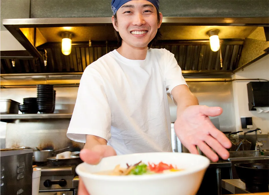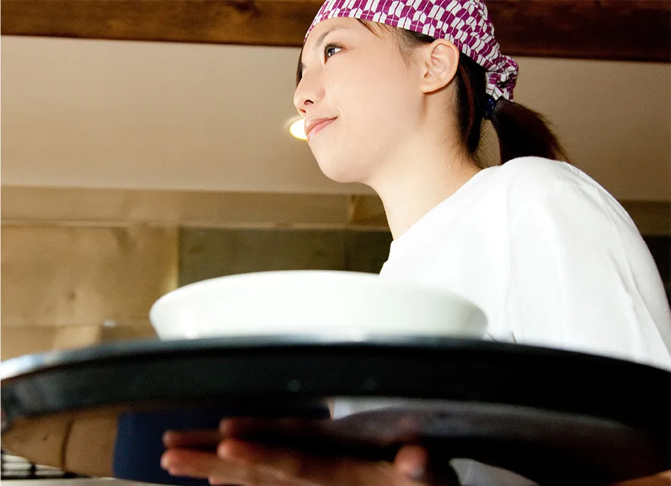 お客様をお迎えする入魂の挨拶、寛ぎの食事時間を提供する心配り、1.5倍速の無駄のない動作が自然と身に付く職場です。